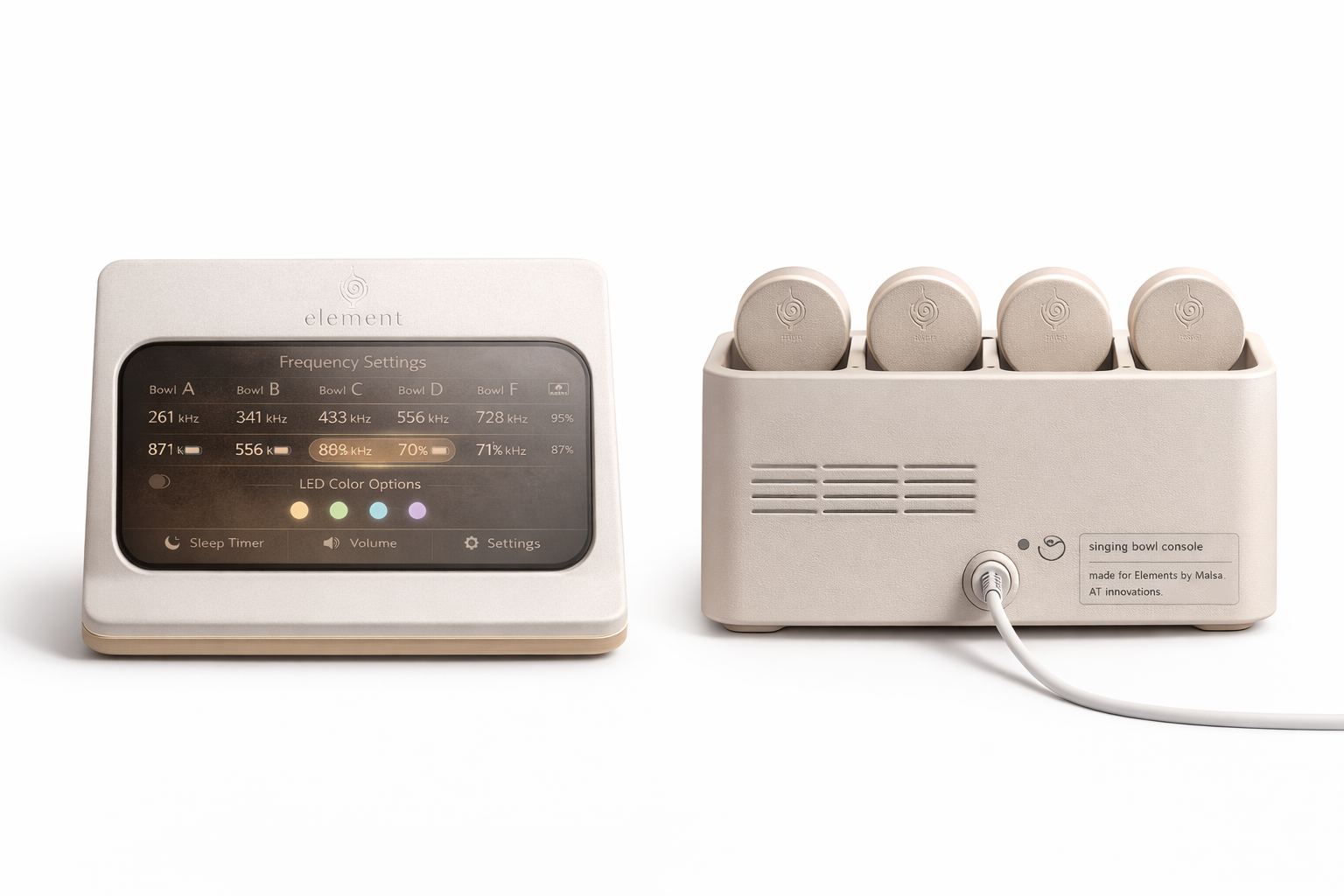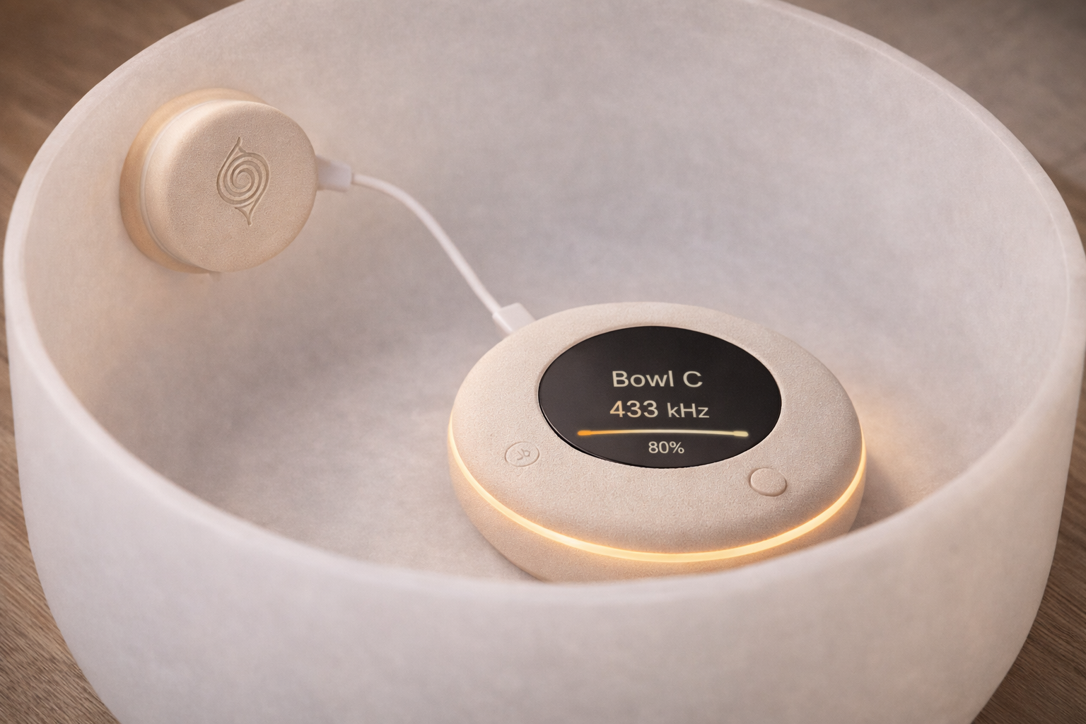 Sound-healing puck system • Dock + pucks